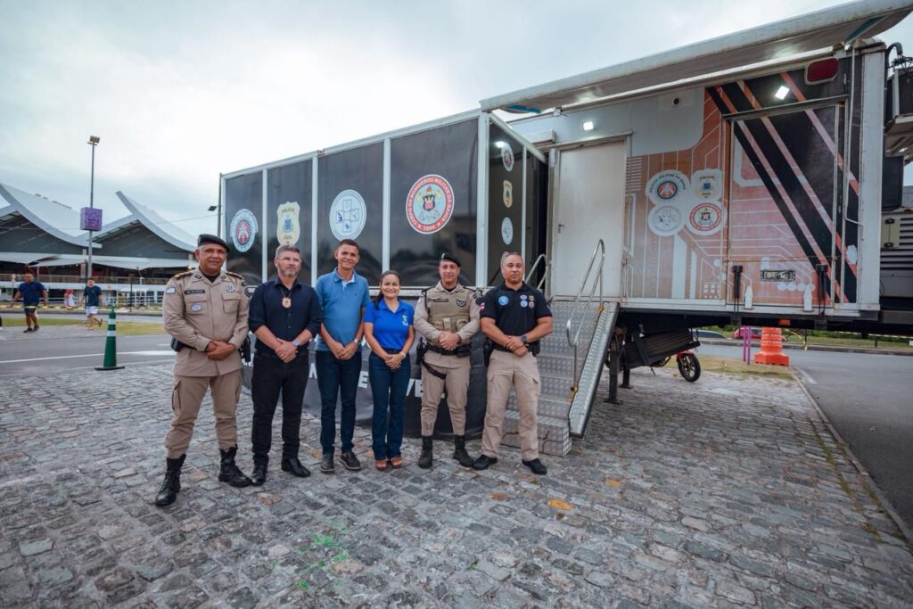 Na ocasião, o diretor de Comando e Controle do Centro Integrado de Comando e Controle Móvel, Luíz Henrique, apresentou o equipamento, instalado no estacionamento do Parque Shopping Bahia, que irá integrar a força de segurança para monitorar todo o circuito da micareta. Segundo o comandante, essa iniciativa reforça a tomada de decisões entre município e estado, além de otimizar e garantir a segurança do evento. “Essa ferramenta móvel permite uma ação mais efetiva da segurança com o monitoramento de câmera de alta tecnologia e reconhecimento facial para promover mais eficiência na Mica Lauro”, ressaltou Luís Henrique.