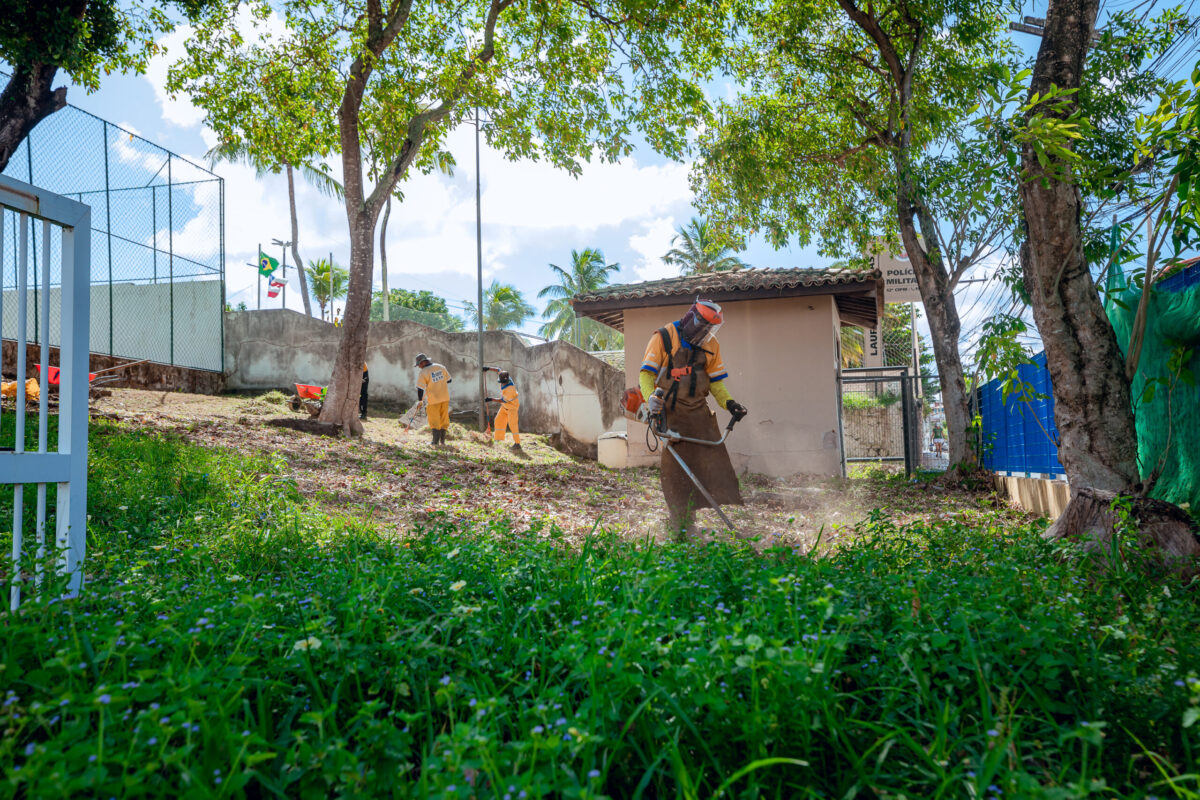 Mais espaços e equipamentos públicos recebem manutenção e serviços de limpeza. A iniciativa da Prefeitura de Lauro de Freitas, reforça seu compromisso e manter ambientes dignos e em condições de realizar acolhimento e receber visitantes. Nesta quinta-feira (30/1), o Espaço Aldeias de Segurança e Cidadania recebeu roçagem, varrição e pintura.