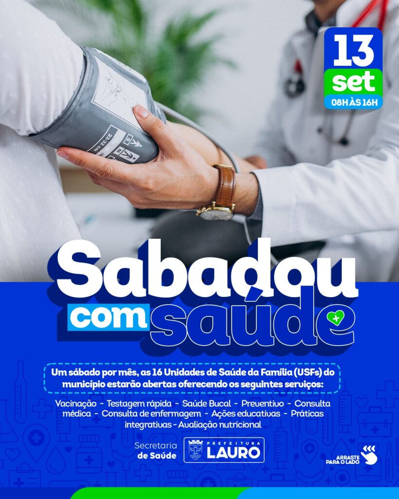 Com o objetivo de garantir uma assistência de qualidade e acessível a toda a população, a Prefeitura de Lauro de Freitas, por meio da Secretaria Municipal de Saúde (SESA), lançará o projeto “Sabadou com Saúde”, neste sábado (13/9). A iniciativa, inédita no município, busca ampliar e agilizar o acesso aos serviços da atenção básica.