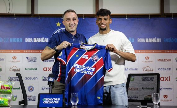 Luciano Rodríguez, novo reforço do Esporte Clube Bahia, foi apresentado nesta sexta-feira (26) em coletiva de imprensa na Arena Fonte Nova. O atacante uruguaio, que vestirá a camisa 17, estava acompanhado do diretor de futebol do Bahia, Cadu Santoro.