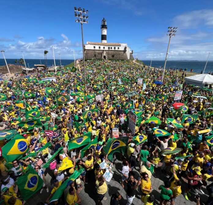Manifestação por anistia de Jair Bolsonaro reúne multidão no Farol da Barra