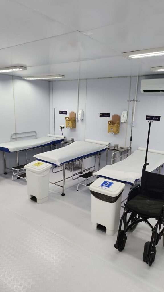 A estrutura foi montada entre a Rua Chile e Rua da Ajuda e é composta por 05 leitos, sendo 01 de estabilização; e equipe composta por 08 profissionais entre médicos, enfermeiros, técnicos de enfermagem, condutores, apoio operacional, recepcionistas e auxiliar de higienização. Uma ambulância do SAMU também estará de prontidão para casos de transferência de pacientes, bem como as UPAs do entrono ficarão de retaguarda.