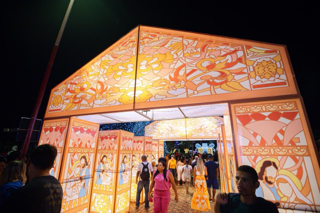 Antes mesmo do acender das luzes, a magia já se espalhava pela Praça João Thiago dos Santos, conhecida popularmente como Praça da Matriz. Na noite deste sábado (6/12), o espaço ganhou cor e brilho com a abertura oficial do Natal Mágico, iniciativa da Secretaria Municipal de Cultura, Lazer, Juventude e Esporte (SECULJE). Árvores monumentais, guirlandas luminosas e uma chuva de luzes transformaram a vila cenográfica em um cenário lúdico que encantou famílias inteiras e reacendeu o espírito natalino.