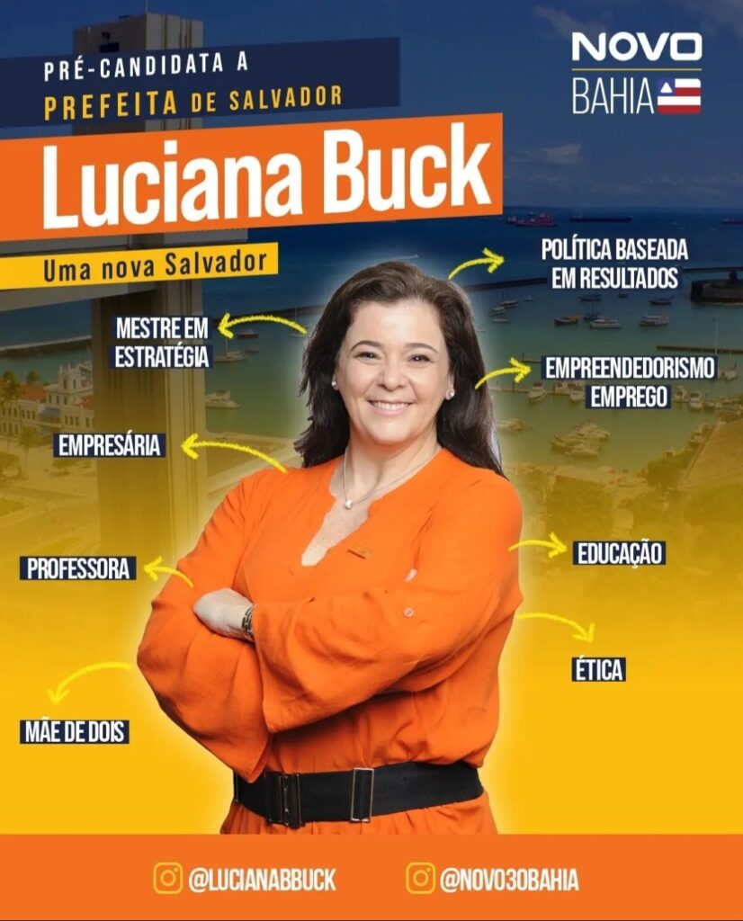 O Partido NOVO anunciou neste sábado (16), a pré-candidatura de Luciana Buck a prefeita de Salvador.
