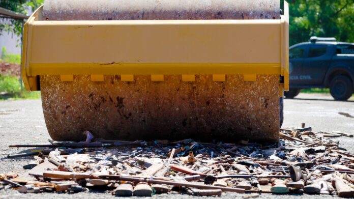 Polícia Civil destrói 1.200 armas ilegais durante lançamento de operação para eliminar 30 toneladas de armamentos