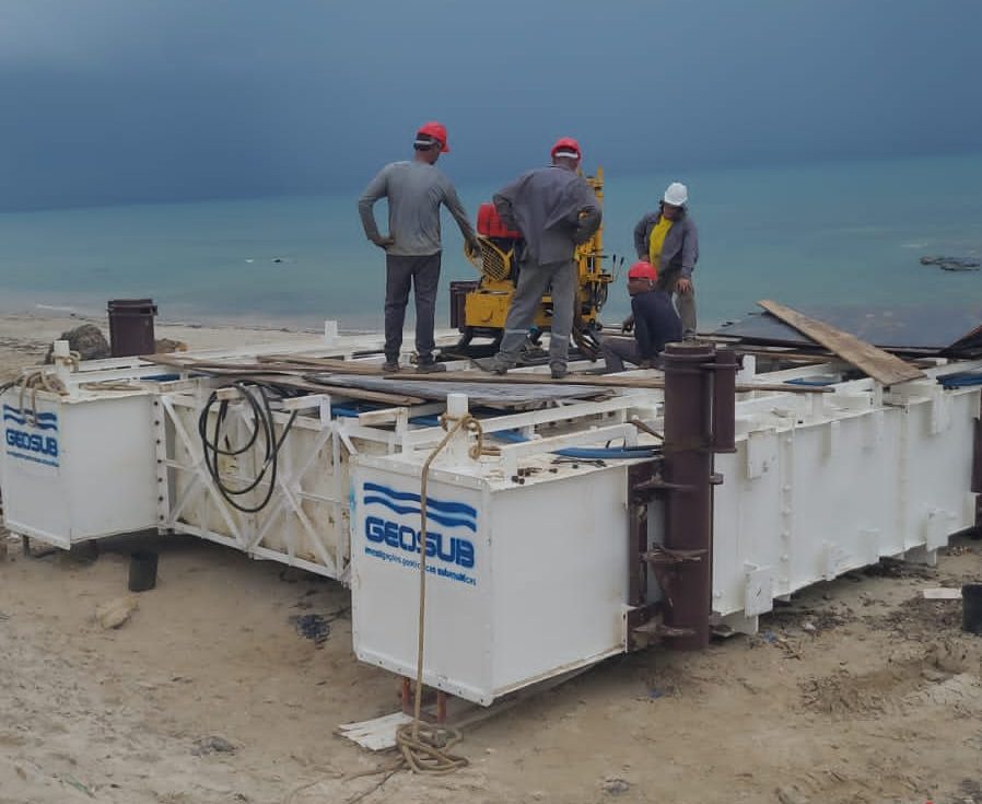 Na última quarta-feira (21), foi iniciada a sondagem em terra em Salvador, em uma área próxima ao ferry-boat. A sondagem é necessária para compreender as características do terreno e definir a fundação da estrutura da ponte. Com uso de uma perfuratriz, são obtidos fragmentos do solo no local onde posteriormente serão instalados os pilares. Posteriormente, essas amostras são enviadas para laboratório onde são feitas as análises detalhadas do material coletado.