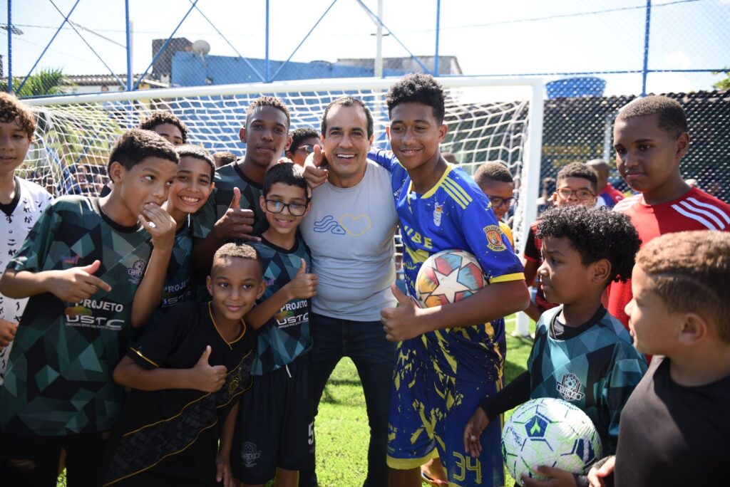 “Já somos a cidade do Brasil com mais campos públicos com grama sintética. Antigamente, a galera pedia para a gente passar a máquina nos campos, colocar alambrado. Mas nós transformamos isso. Veio a iluminação em LED e, agora, a grama sintética. Essa transformação vem ocorrendo em toda a cidade e em todas as áreas”, disse o prefeito.