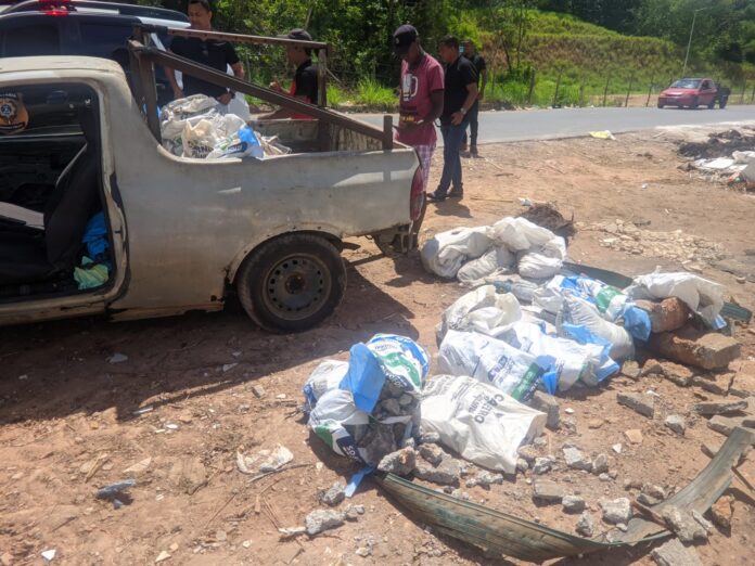Em um trabalho contínuo de combate a crimes ambientais no município, equipes da gestão municipal, durante ronda na Rua Gerino de Souza Filho, na região do Bambuzal, nesta quinta-feira (11/12), identificaram dois homens realizando descarte irregular de entulho no local.