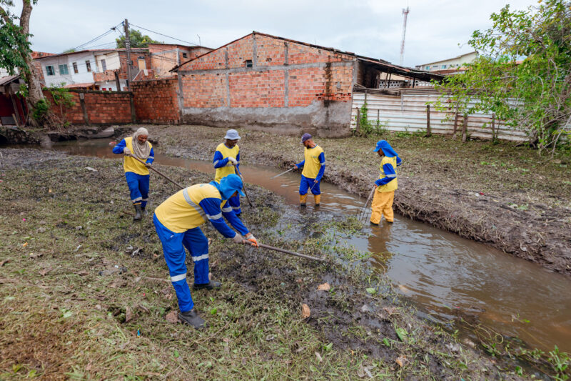 Prefeitura de Lauro de Freitas realiza ação de limpeza de canal em Portão