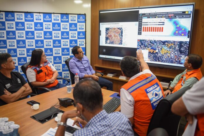 O prefeito Bruno Reis, junto a secretários e gestores de órgãos municipais pertencentes ao Sistema de Proteção e Defesa Civil de Salvador, realizou nesta quinta-feira (28) uma reunião para definir ações emergenciais e novas medidas preventivas que serão realizadas na cidade para mitigar os efeitos das chuvas.