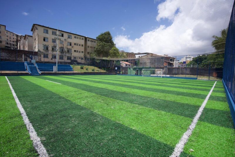 A Prefeitura de Salvador entregou nesta sexta-feira (14) mais um equipamento esportivo totalmente requalificado: a Arena Argolão, localizada na Rua Diógenes Alves, em Pernambués. O lugar, que antes era um campo de barro, sem alambrado e frequentemente alagado em dias de chuva, ganhou grama sintética, sistema de iluminação em LED e toda a estrutura necessária para realização de partidas de futebol.