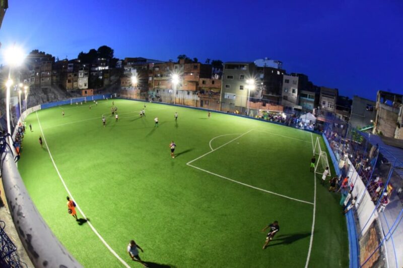 Já o corretor de imóveis Luís Cláudio, conhecido como Claudinho, de 53 anos, disse que a obra trouxe grandes mudanças para ele e seus vizinhos. “Antigamente, quando chovia, o campo ficava com muita lama. Cuido deste campo há mais de vinte anos e não víamos perspectiva de melhoria. Desejávamos uma mudança e fiquei muito feliz com o resultado dessa arena. Foi muito positivo para a comunidade, não apenas o campo, mas também o entorno e a infraestrutura. A iluminação e a contenção das casas foram melhoradas. Foi uma obra de grande qualidade, que beneficiou especialmente os jovens, os afastando das drogas e da criminalidade. Isso é muito importante”, elogiou.