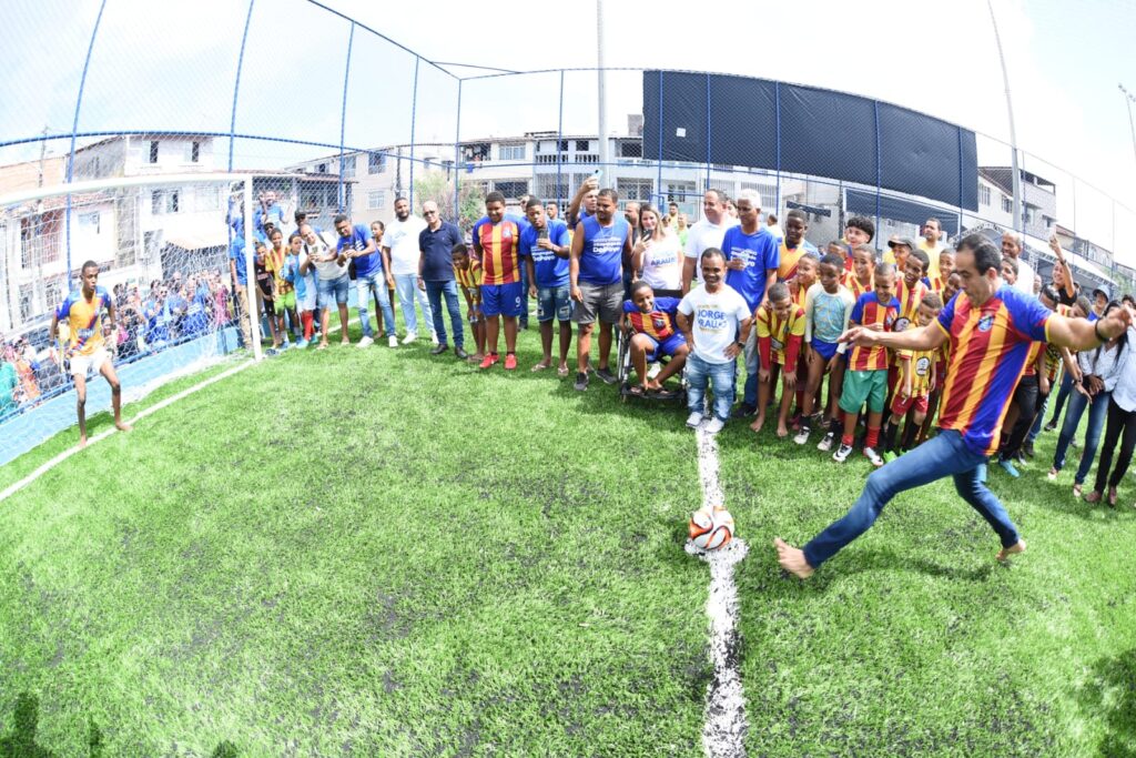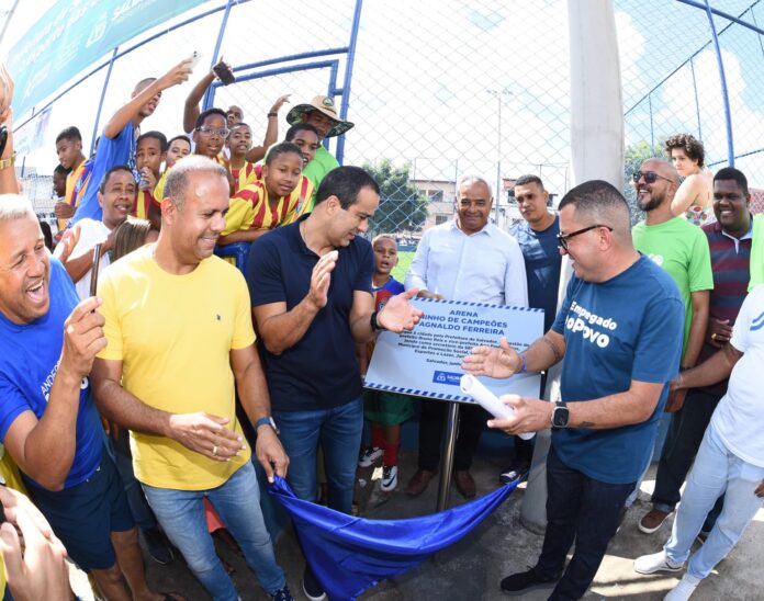 Os tradicionais babas na Rua E, em Castelo Branco, passam a ser realizados em uma estrutura de alto padrão, instalada pela Prefeitura. A nova Arena Ninho de Campeões Agnaldo Ferreira foi entregue neste sábado (8), com as presenças do prefeito Bruno Reis, demais gestores e autoridades municipais e população. O equipamento é o 47º campo com gramado sintético entregue pela gestão municipal em Salvador desde 2021.