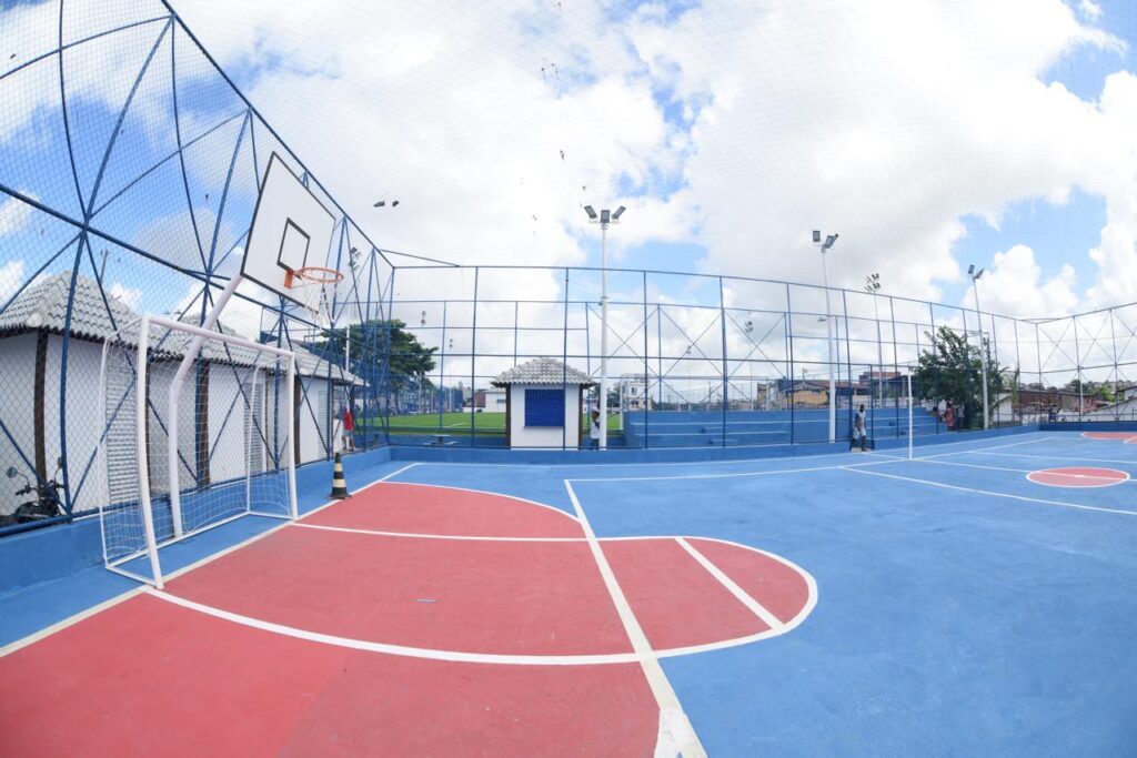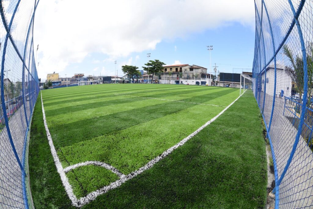 Equipamentos esportivos – O campo com grama sintética tem cerca de 3,2 mil metros quadrados e possui arquibancada, enquanto que a quadra poliesportiva tem 593 metros quadrados. Os serviços no local foram executados pela Secretaria de Promoção Social, Combate à Pobreza, Esportes e Lazer (Sempre).