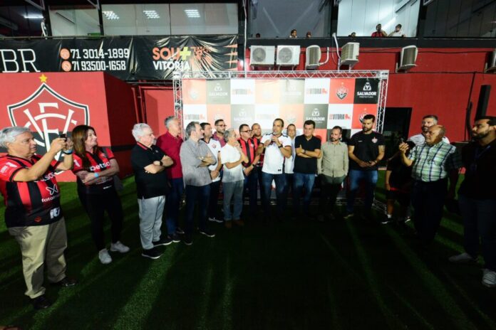 Participaram da solenidade os secretários municipais da Casa Civil, Luiz Carreira; da Infraestrutura, Francisco Torreão; e de Sustentabilidade e Resiliência, Ivan Euller; a presidente da Fundação Mário Leal Ferreira, Tânia Scofield; o secretário particular do prefeito, Igor Dominguez; o presidente do Vitória, Fábio Mota, entre outras autoridades municipais e dirigentes do clube.