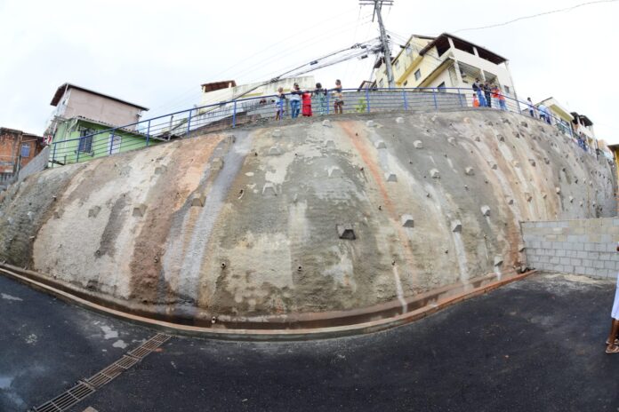 A Prefeitura de Salvador entregou uma nova contenção de encosta na Ladeira de Santa Rita, no bairro de Matatu de Brotas, proporcionando mais segurança e tranquilidade às famílias que vivem no local. A inauguração da estrutura foi feita pelo prefeito Bruno Reis nesta quarta-feira (21), como parte da estratégia do município para redução de riscos e proteção de áreas vulneráveis para deslizamentos de terra na cidade.