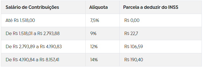 • Faixas da tabela de contribuição ao INSS: todas as faixas subiram para os seguintes valores: