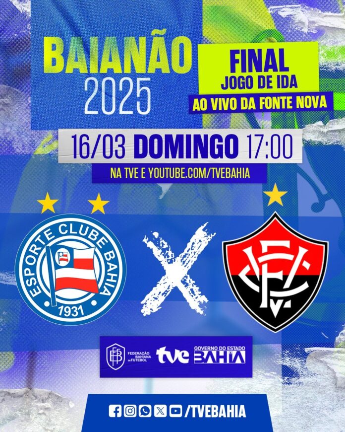 A grande final do Campeonato Baiano 2025 será mais um clássico Ba-Vi, com a primeira partida neste domingo (16), às 17h (pré-jogo), na Arena Fonte Nova, em Salvador. O confronto será transmitido pela TVE, com exibição ao vivo também pelo https://youtube.com/tvebahia, e ainda para todo o país através da TV Brasil.