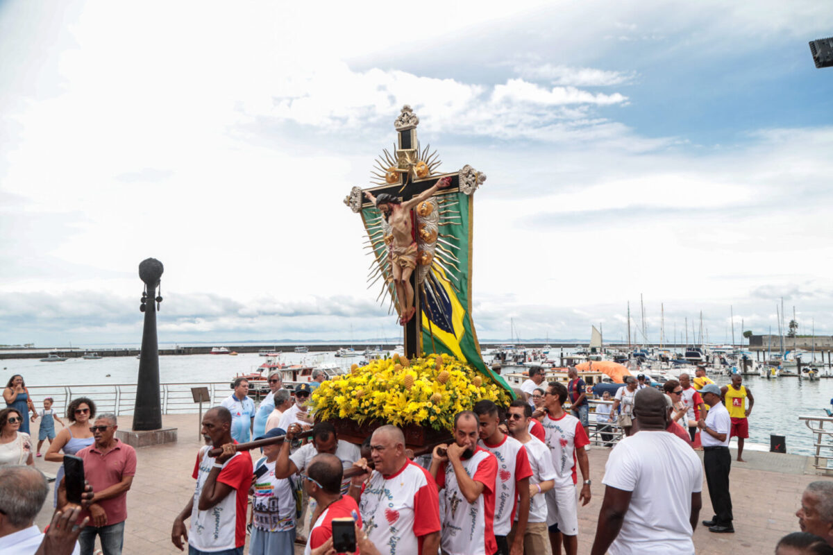 Uma procissão marítima levou, na manhã desta quarta-feira (15), a imagem do Senhor do Bonfim em direção à Igreja da Conceição da Praia, no Comércio. A programação teve início às 8h, com a procissão partindo da Marina da Penha, na Ribeira, em direção ao Porto da Barra, retornando e finalizando no Terminal Náutico da Bahia. A realização do evento é do Santuário do Senhor do Bonfim, com apoio da Barco Show Eventos, da Marinha do Brasil, da Associação Náutica da Bahia e da Prefeitura de Salvador, e precede a Lavagem do Bonfim, que acontece nesta quinta-feira (16), com procissão até a Colina Sagrada, no Bonfim.