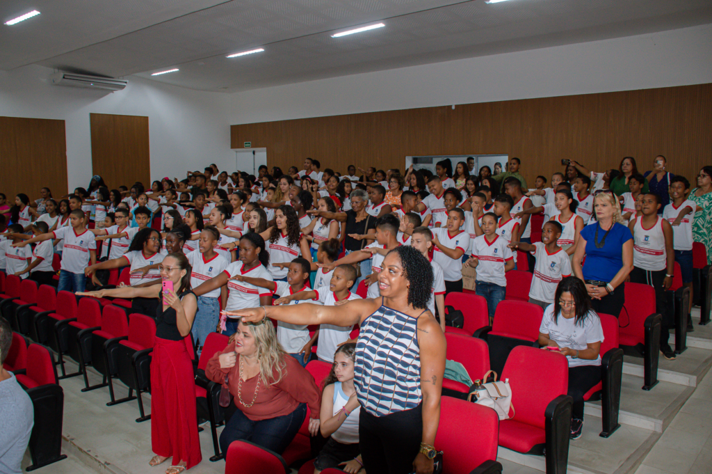 Estudantes da Rede Pública Municipal de Ensino do município participaram da cerimônia de formatura do Programa Educacional de Resistência às Drogas e à Violência (Proerd), realizado pela Polícia Militar da Bahia em parceria com a Prefeitura de Lauro de Freitas e a Secretaria Municipal de Educação (SEMED), nesta sexta-feira (5/12), no Centro Estadual de Educação Profissional em Tecnologia, Informação e Comunicação (CEEPTIC). A iniciativa, que há mais de dez anos integra o cotidiano escolar da cidade, tem como objetivo fortalecer a educação preventiva, orientar crianças e adolescentes sobre riscos relacionados ao uso de drogas e estimular escolhas seguras e responsáveis.