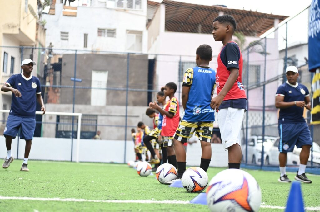 A Prefeitura de Salvador lançou nesta segunda-feira (22), em parceria com o Esporte Clube Bahia, um projeto que irá oferecer aulas de futebol masculino e feminino a cerca de 1,5 mil crianças de escolas públicas da capital baiana diariamente. Por meio da iniciativa, chamada de Bora Bahêa Meu Bairro, o tricolor vai adotar 11 campos em Salvador para oferecer as atividades esportivas.