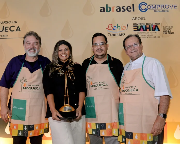 A Maxixada Terra e Mar, da chef Thiara Novaes, do restaurante Mirantes Marina, em Itacaré, na Costa do Cacau, foi a vencedora do Concurso da Moqueca 2024 e levou o troféu Dendê de Ouro. A final da competição teve representantes das 13 zonas turísticas da Bahia, na tarde de sábado (7), no Mercado do Rio Vermelho (Ceasinha), em Salvador. Em segundo e terceiro lugares ficaram os estabelecimentos Oásis D’Moura (Santo Antônio de Jesus – Caminhos do Jiquiriçá) e Sabor da Serra (Lençóis – Chapada Diamantina), respectivamente. O evento foi promovido pela seção baiana da Associação Brasileira de Bares e Restaurantes (Abrasel-BA), em parceria com as secretarias estaduais de Turismo (Setur-BA) e de Desenvolvimento Econômico (SDE).