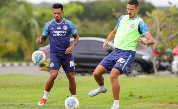 Em campo, após rápido aquecimento com bola, o treinador Rogério Ceni separou dois times e realizou uma atividade tática.