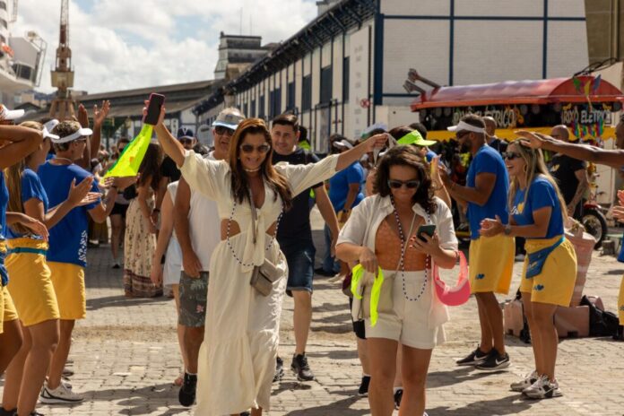Quase 8 mil visitantes em dois cruzeiros desembarcaram na manhã desta terça-feira (4), último dia oficial do Carnaval de Salvador 2025, no Terminal Marítimo de Passageiros, no Comércio. Os turistas, que vieram curtir a folia soteropolitana, desembarcaram do MSC Grandiosa, que fica na capital até o final da tarde de hoje, e do MSC Orchestra, que zarpa às 12h da quarta-feira de Cinzas. Os passageiros foram acolhidos pelo receptivo da Secretaria Municipal de Cultura e Turismo (Secult) com muita energia, axé e coreografias das músicas que estão bombando neste verão.
