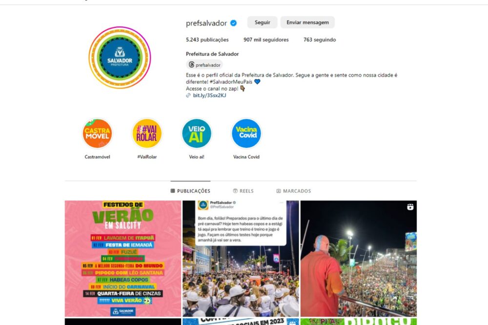 A Prefeitura de Salvador teve o maior número de interações nas suas redes sociais entre todos os perfis de prefeituras do Brasil em 2023. O levantamento foi divulgado na terça-feira (6) pela Social Media Gov, empresa e plataforma que acompanha as métricas de engajamento digital das instituições públicas de todo o país e é uma referência do setor.