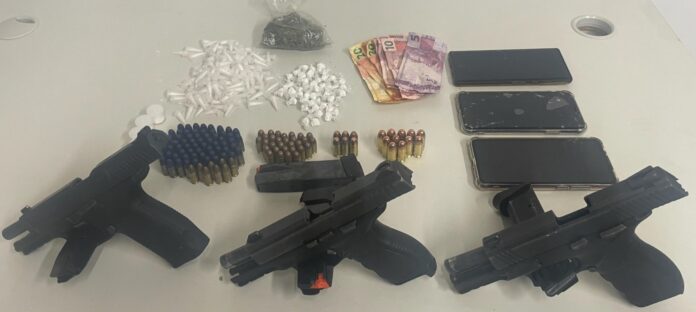 Na ação, foram apreendidas três pistolas de calibres .40, 45 e 9mm, além de munições. Os policiais militares constataram que o veículo utilizado pelos criminosos tem restrição de roubo e há a suspeita de que era utilizado em ações criminosas na capital baiana.