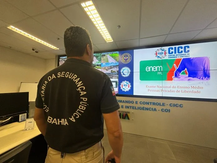 A Secretaria da Segurança Pública (SSP-BA) iniciou, nesta terça-feira (10), as atividades no Centro Integrado de Comando e Controle (CICC) para monitorar o Exame Nacional do Ensino Médio (Enem) para Pessoas Privadas de Liberdade (PPL) 2024. A prova será aplicada nesta terça e também na quarta-feira (11), em 25 unidades penais do estado.