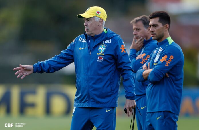 A Seleção Brasileira realizou nesta terça-feira (2) o primeiro treino com grupo completo na Granja Comary, em Teresópolis (RJ). Entre a última noite e esta madrugada, Alisson, Caio Henrique, Gabriel Martinelli, Raphinha e Gabriel Magalhães completaram a delegação da Amarelinha.