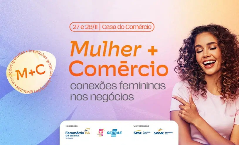 No mês em que se comemora o Dia Mundial do Empreendedorismo Feminino, o Sistema Comércio BA -Fecomércio, Sesc e Senac- e o Sebrae se unem para realizar o “Mulher + Comércio”. Será um evento gratuito voltado à capacitação em gestão de negócios ligados ao setor terciário, dirigido às mulheres empresárias e empreendedoras do estado da Bahia, como também as que desejam começar a empreender. Em dois dias (27 e 28/11) o público poderá assistir a palestras e painéis com grandes nomes do mercado local e nacional, no Teatro Sesc Casa do Comércio, além de participar de oficinas 100% práticas na unidade Senac, localizada no 7º andar do edifício sede do Sistema Comércio BA. As vagas são limitadas e as inscrições já podem ser realizadas via Sympla.