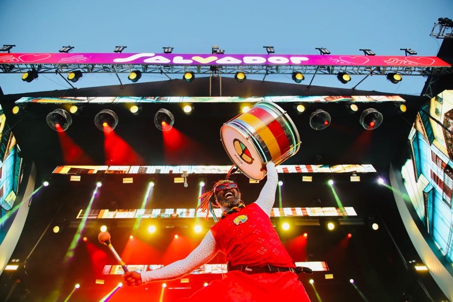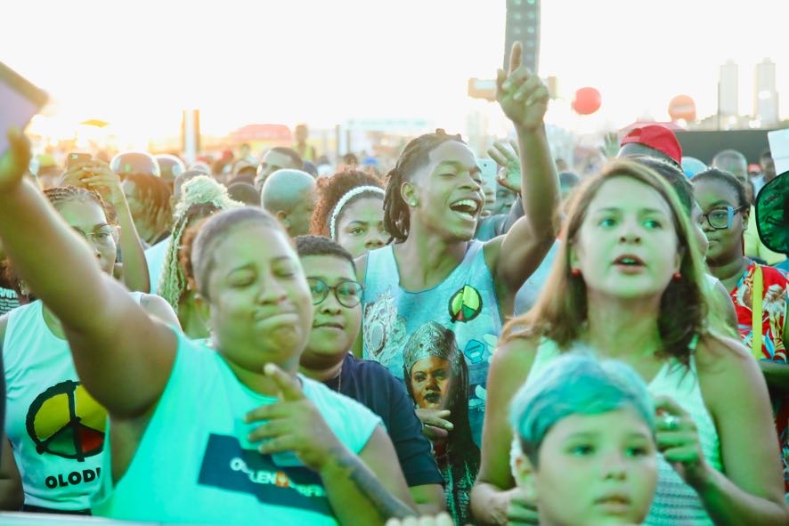 Os tambores vibrantes e ritmados do Olodum abriram o segundo dia de Festival Virada Salvador, nesta sexta-feira (29), e fizeram os corações dos fãs baterem mais forte. Um público fiel fez questão de comparecer bem cedinho para acompanhar as canções marcantes da banda e coloriu a frente do palco com camisas com o nome do grupo e colares com as cores verde, vermelha, amarela, preta e branca.