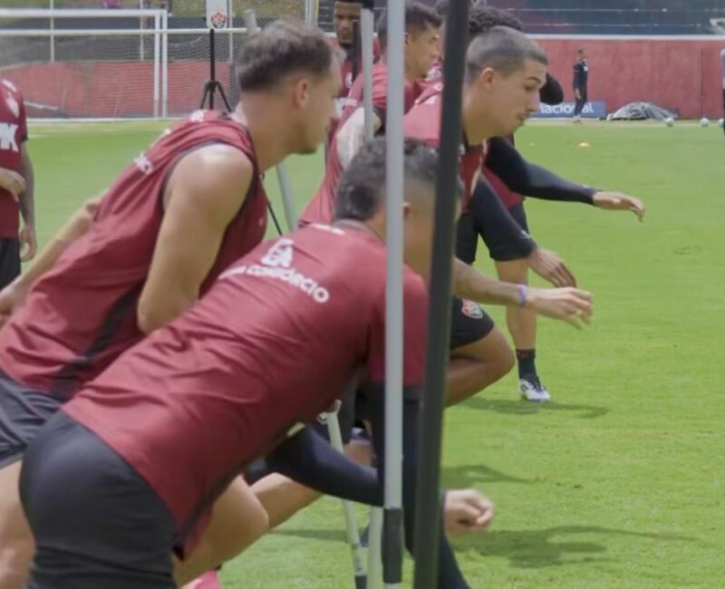 Coube ao preparador físico Juninho Nogueira movimentar os jogadores inicialmente após a roda e bobo.