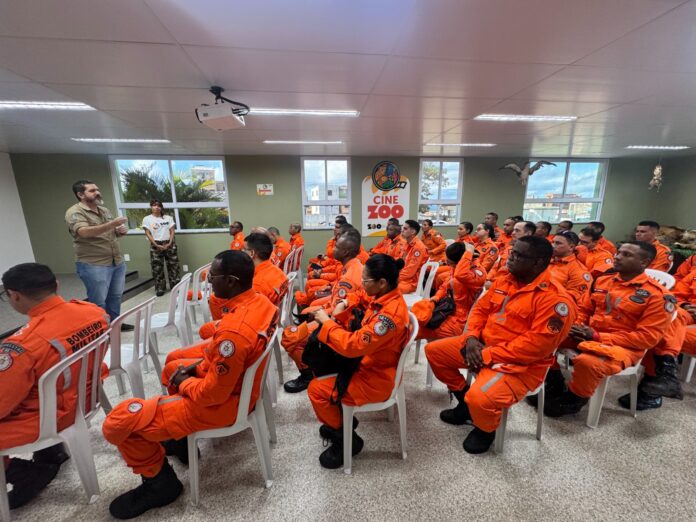 Começou nesta terça-feira (22), no Parque Zoobotânico, em Salvador, o treinamento voltado ao Corpo de Bombeiros Militar da Bahia (CBMB). A ação, promovida pela Secretaria do Meio Ambiente (Sema) e pelo Instituto do Meio Ambiente e Recursos Hídricos (Inema), tem como objetivo capacitar os profissionais do programa Bahia Sem Fogo para o manejo adequado de animais silvestres durante operações de combate a incêndios florestais. A capacitação segue até quinta-feira (24) e é ministrada por médicos-veterinários do Centro de Triagem de Animais Silvestres (CETAS). Ao todo, 40 bombeiros participam da formação.