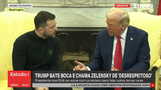 A reunião desta sexta-feira (28) entre o presidente dos Estados Unidos (EUA), Donald Trump, e o presidente da Ucrânia, Volodymyr Zelensky, realizada para discutir uma saída para a guerra contra a Rússia terminou em bate-boca, situação poucas vezes vista entre chefes de Estado diante da mídia mundial.