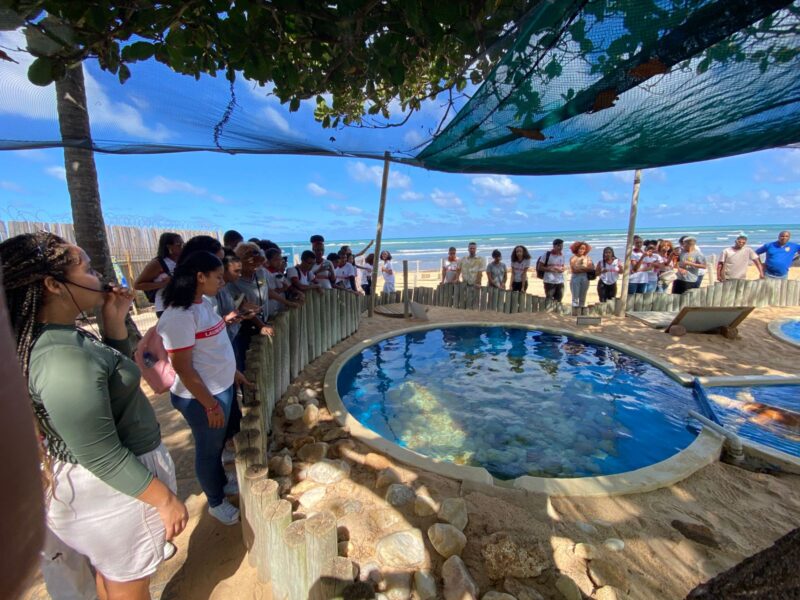 Durante a visita, os estudantes tiveram a oportunidade de conhecer de perto as instalações do Projeto Tamar, acompanhar o trabalho de conservação realizado pela equipe técnica e vivenciar momentos de aprendizagem sobre biodiversidade e sustentabilidade.