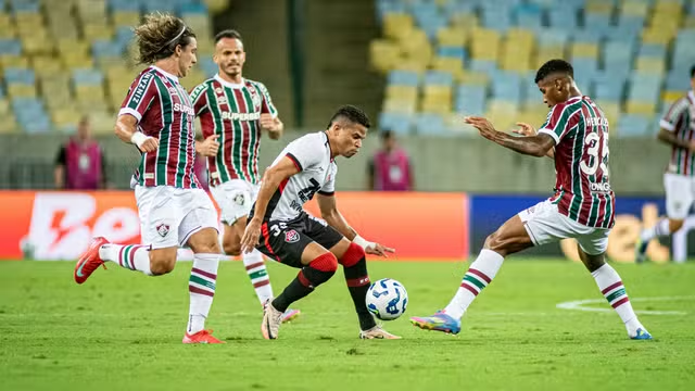 Fluminense e Vitória ficaram no empate por 1 a 1 em jogo válido pela quinta rodada do Campeonato Brasileiro no Maracanã. O Tricolor saiu na frente com Cano no primeiro tempo, mas a equipe baiana chegou ao empate aos 44 minutos da segunda etapa, em gol de Lucas Braga. O erro defensivo custou ao time carioca a chance de assumir a vice-liderança da competição.