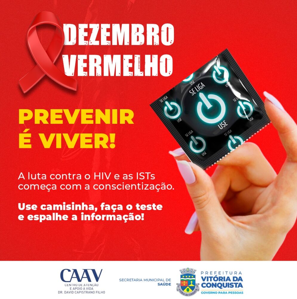 A Secretaria Municipal de Saúde, por meio do Centro de Atenção e Apoio à Vida (CAAV), realiza, de 02 a 06 de dezembro, a Semana de Prevenção “Dezembro Vermelho, prevenir é viver”. O objetivo principal da campanha é promover o diagnóstico precoce e conscientizar sobre o uso do preservativo em todas as relações sexuais, além de assegurar que os pacientes já diagnosticados mantenham o uso regular da terapia antirretroviral (TARV).
