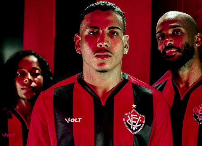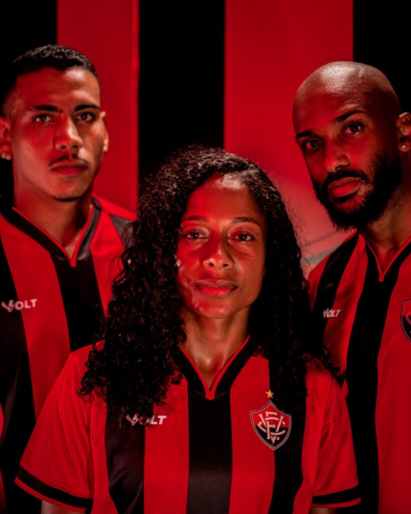Sangue vermelho, pele preta. Sob esse mote, o Vitória anunciou, nesta quarta-feira (10), sua nova camisa para a disputa do Brasileirão, que homenageia a população negra de Salvador, a maior em proporção fora do continente africano. O modelo é no padrão rubro-negro tradicional do time, com as faixas verticais. Na versão de goleiro, o centro do manto é tomado pelo laranja, enquanto a gola e os punhos são vermelhos, e as laterais e a gola ficam em preto.