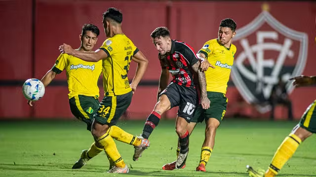 Vitória e Defensa y Justicia fizeram um jogo movimentado na noite desta terça-feira, no Barradão, mas ficaram no empate por 1 a 1 e complicaram suas vidas no Grupo B da Copa Sul-Americana. Edu abriu o placar na primeira etapa, mas Togni deixou tudo igual em cobrança de falta no segundo tempo da partida válida pela quarta rodada da fase de grupos. Na reta final do jogo, o Rubro-Negro teve duas chances de comemorar o resultado positivo, mas Carlinhos não estava em noite feliz e desperdiçou.